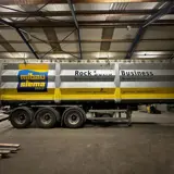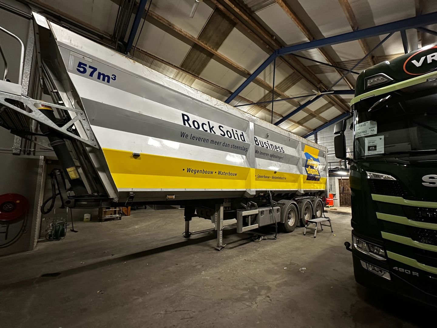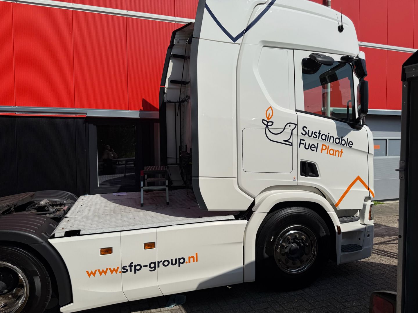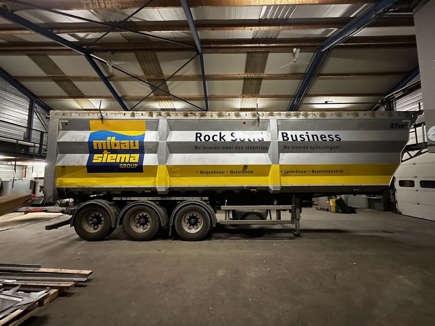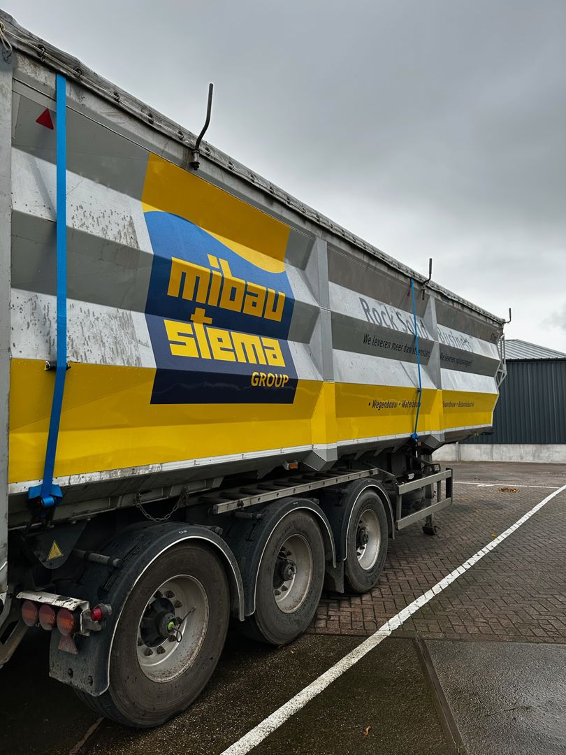 Zo rijden de vrachtwagens van Vrieswijk Transport met onze herkenbare striping, en voorzagen we de SFP Group van een krachtige look met hun logo en zeehond. Ook de kieptrailers van Mibau Stema Group met hun gele balk en de vrachtwagens van Houtsma Pallets zijn uitgevoerd in onze signing.