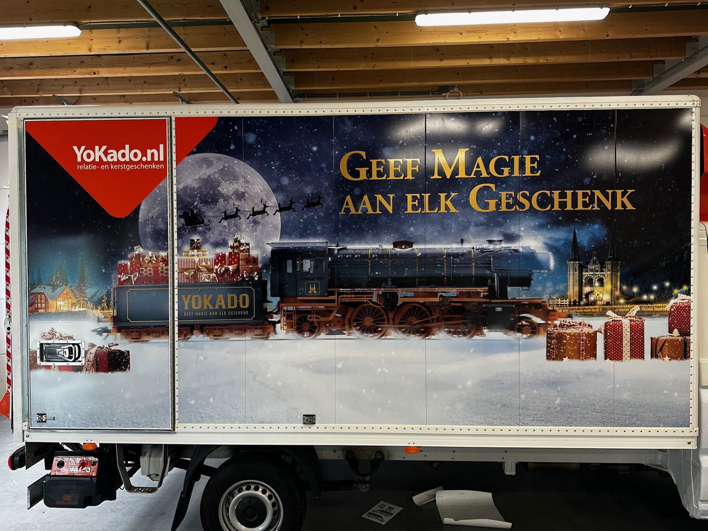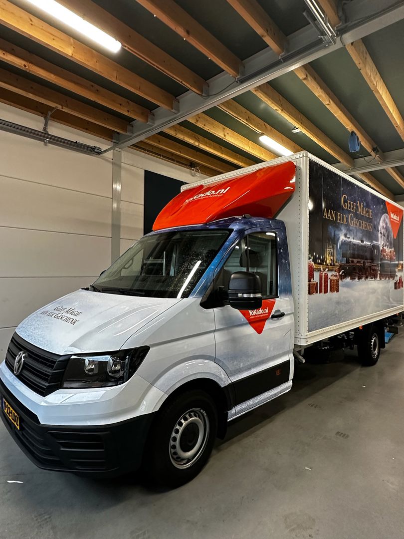 Voor Yokado uit Sneek mochten wij een ID Buzz en een bakwagen compleet wrappen met een uniek ontwerp. Yokado is specialist in relatiegeschenken en marktleider in kerstpakketten – juist dat thema wilden ze krachtig uitdragen.